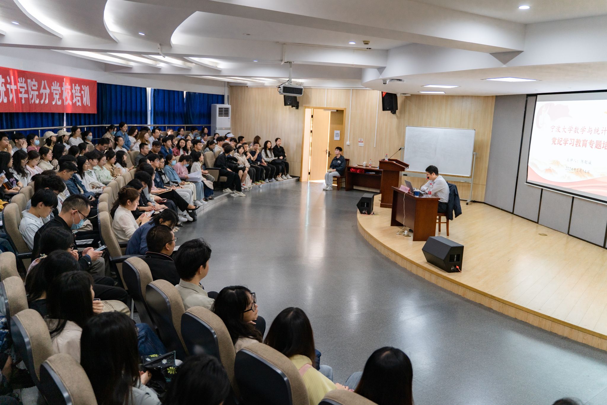 党委组织师生党支部和分党校学员共130余名,共同开展党纪学习教育专题培训。宁波文化百科大讲堂讲师、宁波市廉洁文化高校讲师团成员、浙江纺织服装技术学院研究员陈聪诚为大家深度解读了《中国共产党纪律处分条例》的发展历程和修订的重要内容。