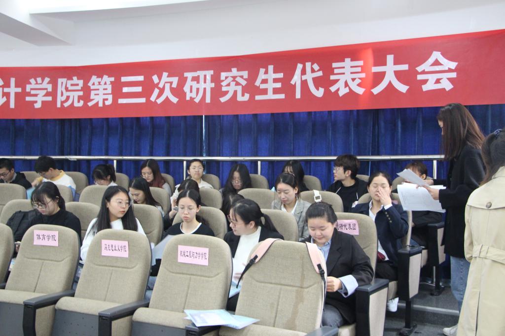 11月5日上午8点30分,av直播 第三次研究生代表大会在包玉书9号楼113报告厅隆重召开。学院党委副书记姜萍、学工办主任张宾、研究生秘书金千愉、校研会代表王睿琦和各兄弟学院的代表们莅临会议,92名研究生代表参加本次会议。