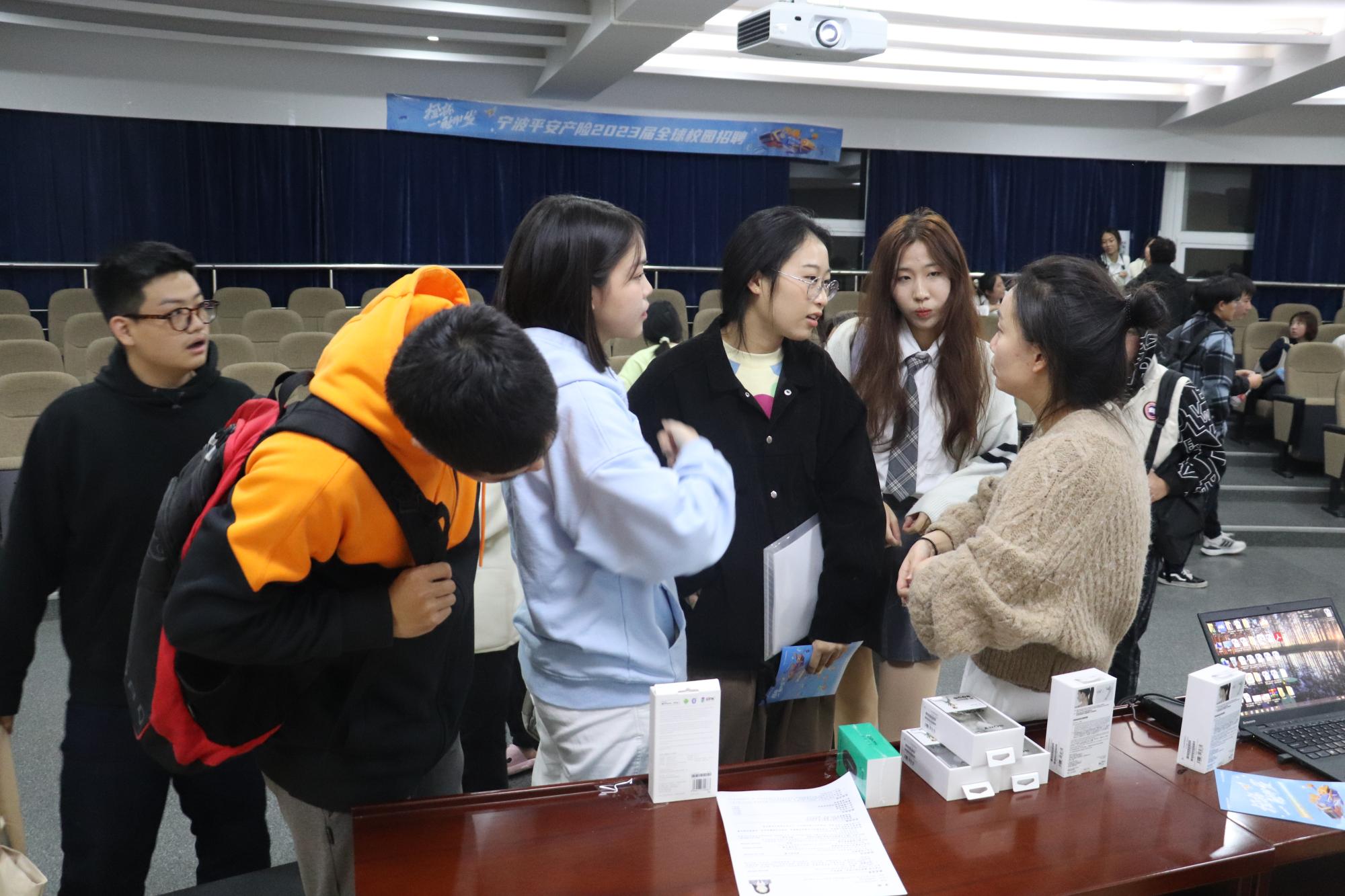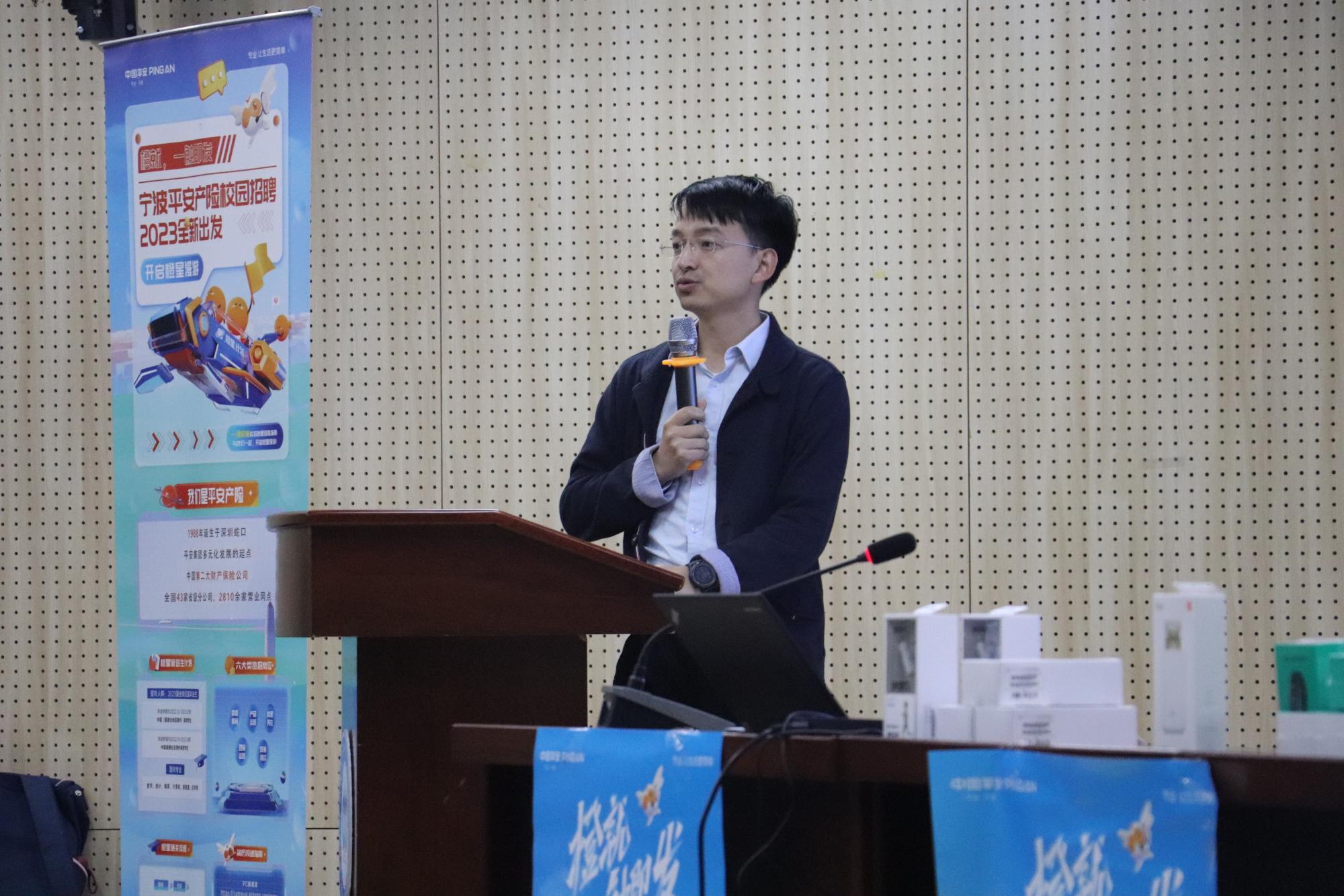 首先,张宾致欢迎辞。他回望了学院与宁波平安产险公司在过去几年中为毕业生搭建就业桥梁的情况,表示学院将不断深化与用人单位的交流互动,进一步拓宽人才输出渠道。随后,齐鸣在发言中介绍了宁波平安产险公司的经营情况以及加入公司后获得的多种发展可能,解答了同学们“加入这个行业只能做推销员吗?”的疑惑。接下来,公司人力资源部丁主任作为主讲人,从平台、实力、发展、保障四个方面向同学们介绍宁波平安产险公司。其中对招聘流程做了详细的介绍,公司将通过网申、测评、笔试、初面、终面、录用等环节招聘数据精算、产品运营等五大类热招岗位。同学们认真聆听了本次宣讲会,在问答环节也踊跃进行了互动。