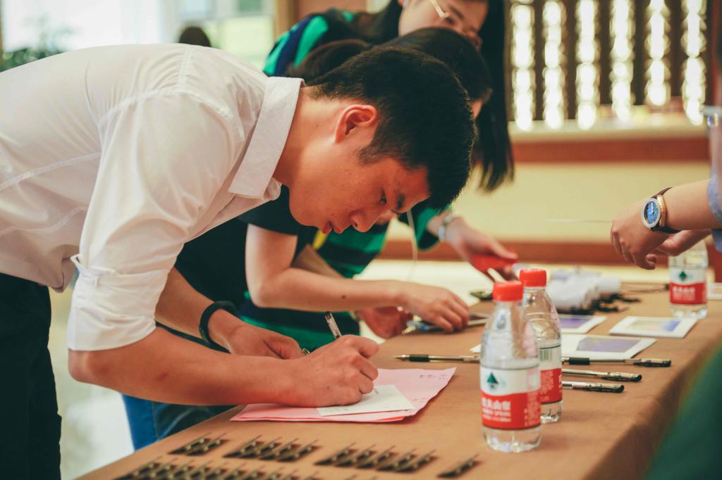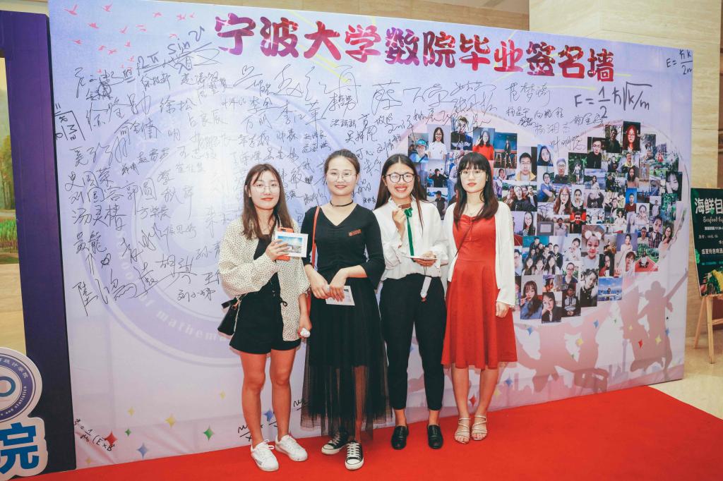 宾馆六合礼厅举办。院长屈长征、院党委书记俞金波、副院长曹炜、胡良根、李传忠及教师代表和140余名毕业生欢聚一堂,共度难忘时光。傍晚,师生走红毯仪式正式开始,他们着盛装、佩戴专属定制胸牌并手持印有“数学学院永远爱你”字样的3D旋屏纪念品,或牵手或相拥或与舍友相伴一同走过属于他们的毕业之路。在签名墙上,毕业生们郑重签下自己的名字,作为他们大学时代的结束和人生新起点的开始。一字一笔一划间,流露着他们对大学时光的留念和回顾,更表达了对未来美好前程的憧憬和向往。