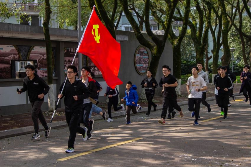 活动伊始,所有的参赛人员聚集在龙赛理科楼拱门前,由屈长征院长代表学院领导对本次活动的顺利开展表示祝贺。随着发令员的一声令下,全体师生在党旗和院旗的引领下迈步向前。大家互相鼓励,并肩奔跑,在欣赏沿途校园春光的同时,也感受着马拉松运动带给自己的身心愉悦。