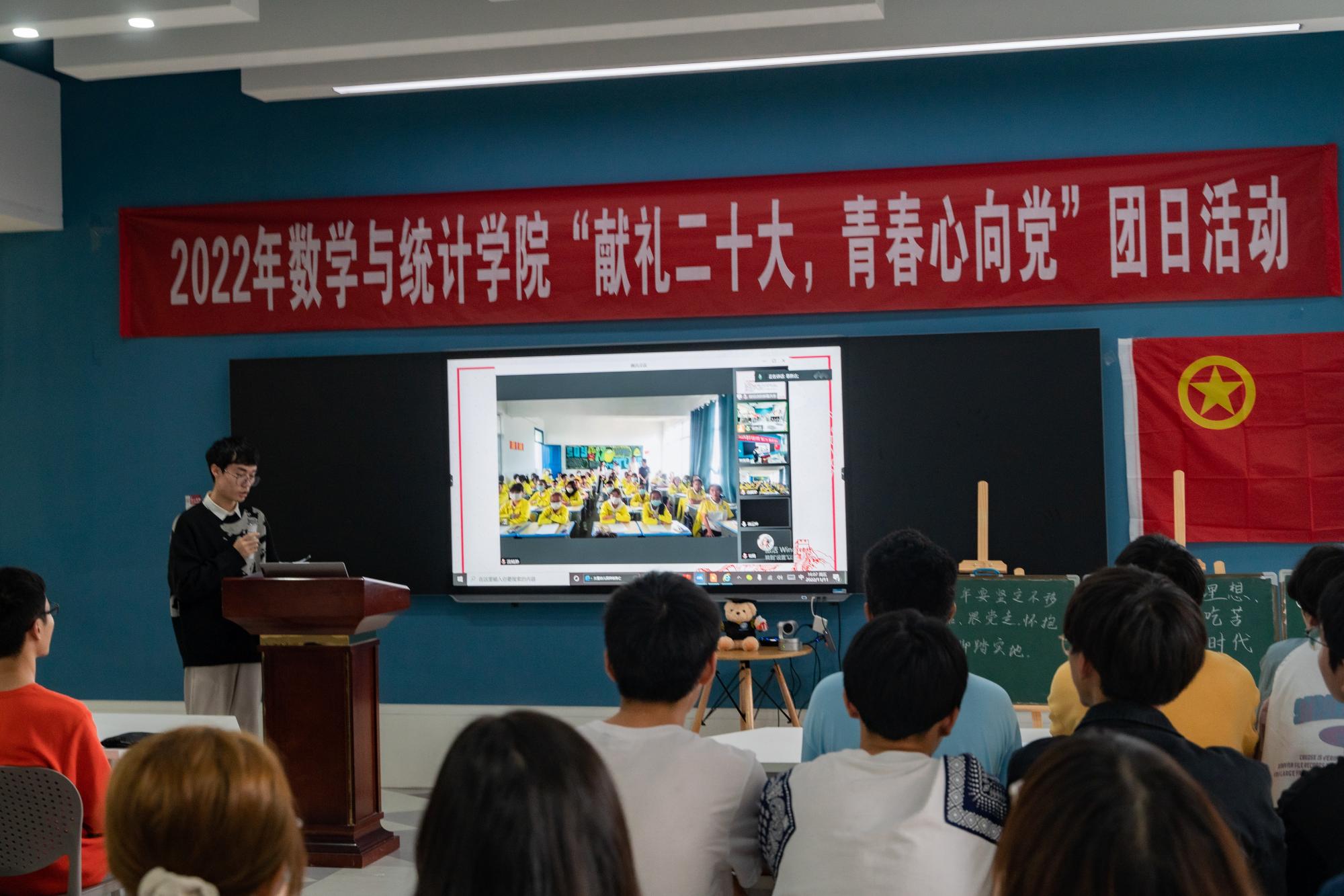 与贵州省兴仁三中联合开展的主题团日活动现场,同学们将二十大报告中的核心数字转变为数学算式,用一道道特殊的数学题共同算出了“中国答案”,以数学人的方式深刻理解了二十大的精神内涵。