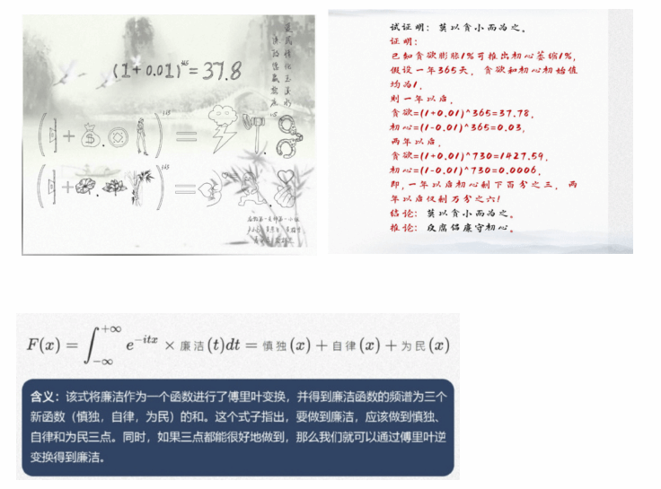 挖掘数学文化中蕴含的廉洁元素,提炼数学中蕴含的廉洁文化的思想内涵、时代价值和教化功能,展示数学魅力与廉洁的内涵,通过创作数学图形、数学符号等创作海报、公益广告、文创设计等平面创意作品,弘扬廉洁教风、廉洁学风和廉洁家风。每件作品需附作品名称和500字以内的设计说明。作品须为平面图片形式,格式为jpg或png,单张图片大小不超过20M。各党支部、团支部于6月10日前提交不少于一份创意作品发送至[email protected],原件交给学工办吴老师。