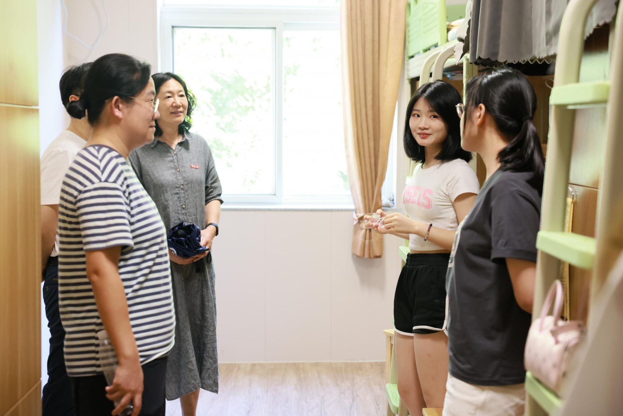党委书记霍妍、党委副书记姜萍、副院长徐松、副院长李莉、工会主席李茂华及新生班主任、辅导员一行走进新生宿舍,与同学们“拉家常、聊近况、话学业”,送上来自av直播