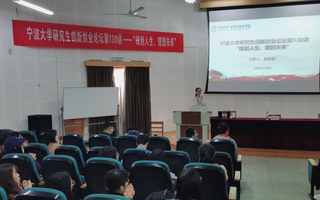 研究生创新创业论坛第130讲在龙赛理科楼报告厅顺利举办。学院党委书记、国家高级职业指导师、团中央KAB师资培训师俞金波带来主题为“规划人生,规划未来”的精彩报告。