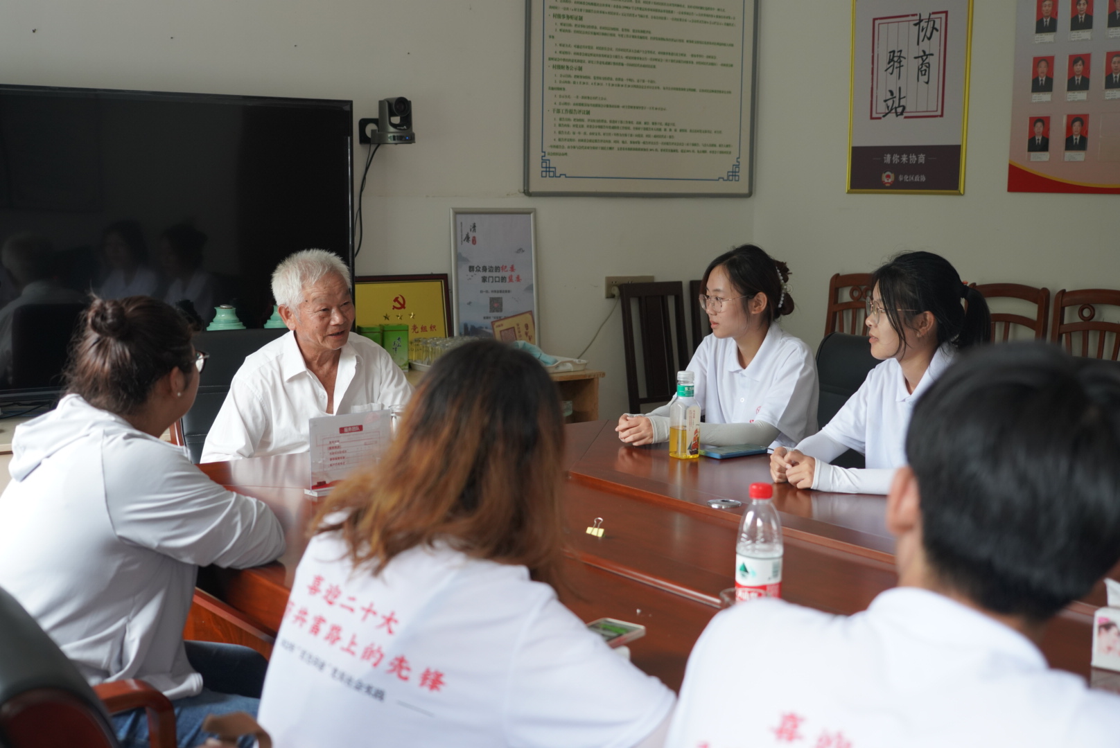 随后,同学们寻访慰问了壶谭村已有50年党龄的周友云老先生。他向学生党员们讲述了壶谭村三位英雄先烈的铁骨铮铮、血洒家乡的英勇事迹,讲到动情处不禁让在场的人都红了眼眶。周友云老先生虽已满头白发,他仍旧接过了中国好人80多岁高龄周洪富老先生手中的“接力棒”,成为三位英雄先烈的扫墓人,继续用自己的行动书写“活着,就要坚守”的誓言。“加入共产党是我一生中最难忘的事情,我们要始终牢记一切荣誉都是党给予我们的,要尽自己所能为人民服务。”周老先生的讲述令学生党员们深受鼓舞和感动。