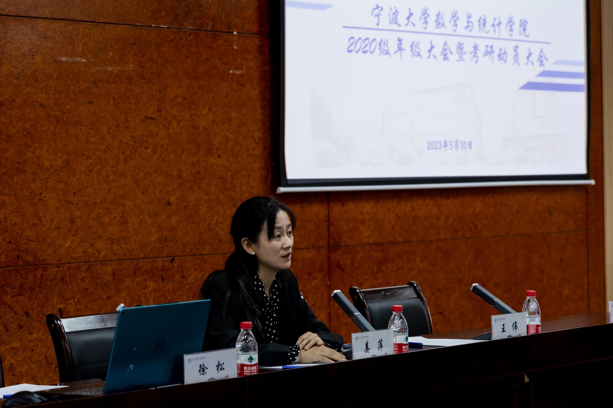 为加强学风建设,进一步调动学生考研积极性,树立目标,增强信心,510日,数学学院组织召开“何惧路遥,‘研’途有你”2020级年级大会暨考研动员大会学院党委副书记姜萍、副院长徐松、团委书记陈佳雯、金融工程系教授王伟、辅导员孔家辉出席会议,2020级全体本科生参加本次大会。