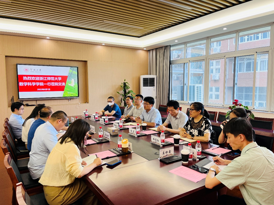 会上,屈长征对浙江师范大学数学科学学院一行人的到来表示欢迎。双方分别就如何加强数学学科的社会服务能力、提升高层次人才吸引力、优化科研奖励、提高博士生培养质量、加强建模团队建设、提升考研率等问题进行了经验交流和深入探讨。