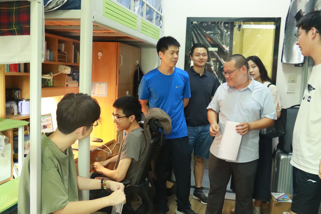 的党委书记霍妍、党委副书记姜萍、副院长陈传强、党委委员何洪津、研究生导师孙跃芳、辅导员老师侯婷婷走访了数院的新生宿舍,亲切慰问了新生并与他们交流互动。