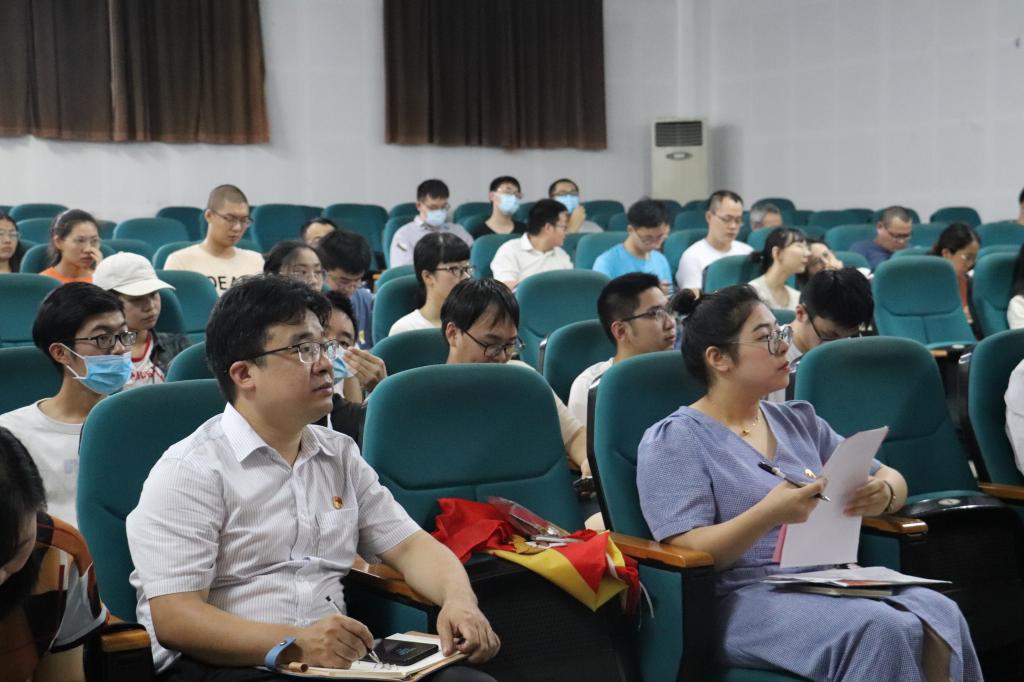 表彰大会结束后,俞金波同志作题为“守初心,担使命,共抗疫---弘扬红船精神”微党课,全面回顾了中共一大的召开细节,重点介绍了“红船精神”所包含的首创精神、奋斗精神和奉献精神,表达了对我院全体师生立足本职、再接再厉,不断取得新成绩的殷切希冀。