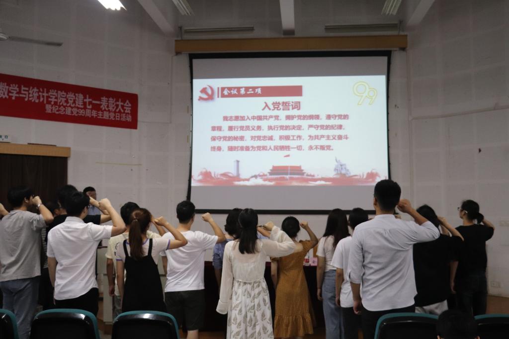 “七一”表彰大会暨纪念建党99周年主题党日活动在龙赛理科楼报告厅隆重召开。党委书记俞金波、副院长曹炜、副院长胡良根出席会议。大会由党委委员、团委书记张宾主持。