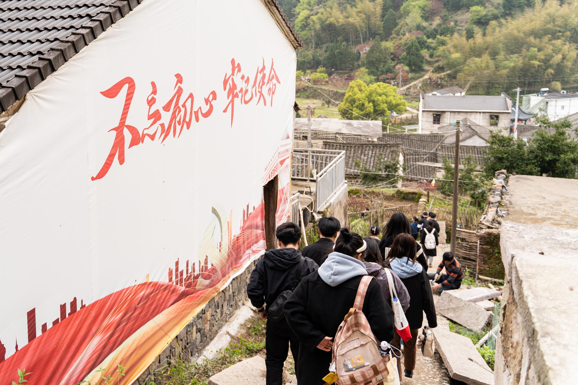 在溪口镇壶潭村,师生党员们参观壶谭革命烈士纪念馆,深入了解革命先烈们的英勇抗争事迹,重温入党誓词再次坚定政治理想信念。并前往烈士墓园,全体师生代表手持黄白菊花,低头静立,向为革命事业前赴后继、英勇献身的革命烈士默哀。在祭扫仪式上,学院党委书记霍妍老师代表全体党员向三位烈士致悼词表达崇高的敬意。同时,也激励师生要继承并践行英雄精神,汲取前行力量,让青春在全面建设社会主义现代化的火热实践中绽放绚丽之花,从而无愧于时代、无愧于先烈。